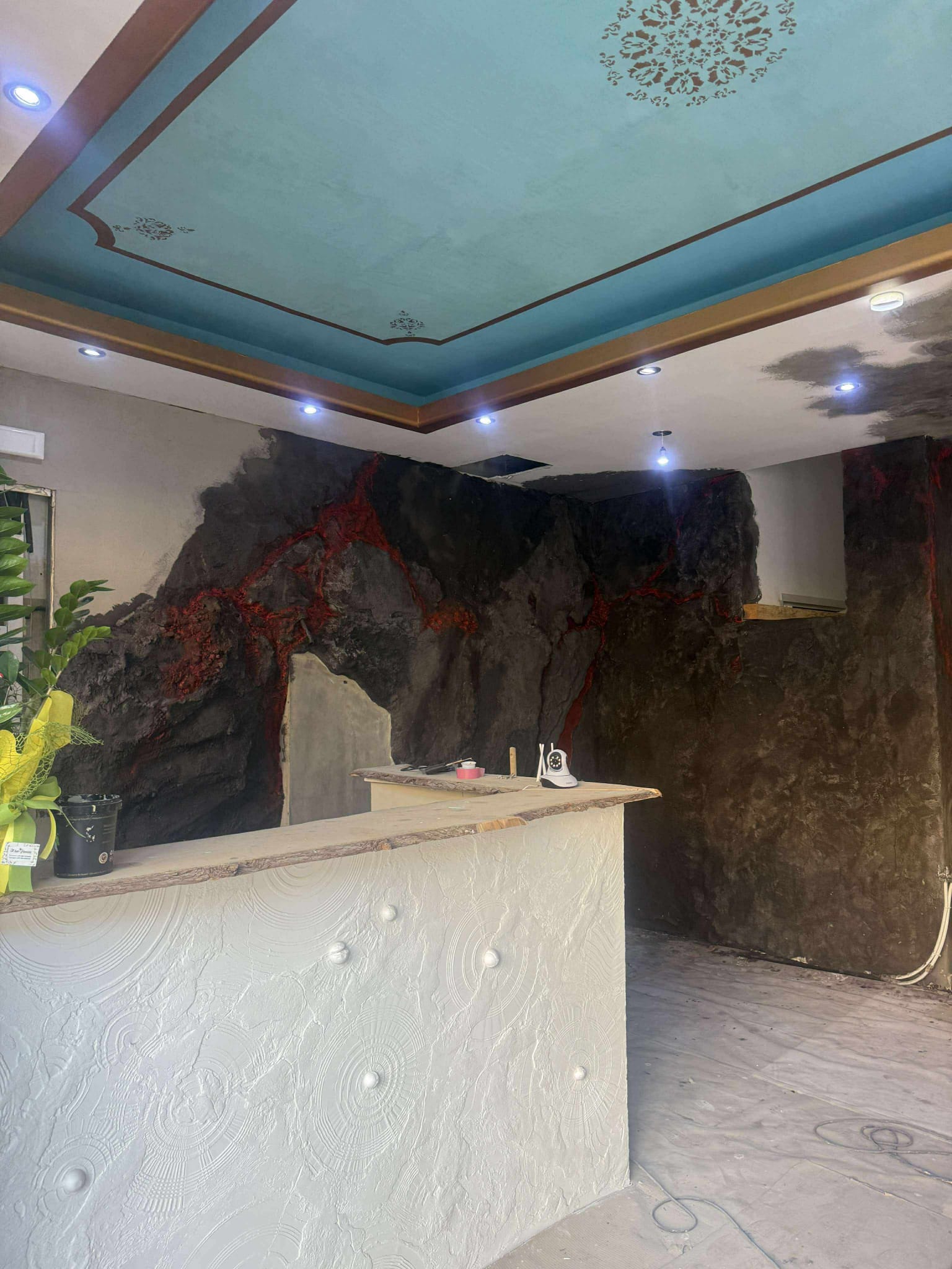Spatolo calce e stucchi per effetti marmorino e travertino, lavoro il microcemento per pavimenti e rivestimenti contemporanei, realizzo finti marmi e decorazioni a stencil con precisione millimetrica.